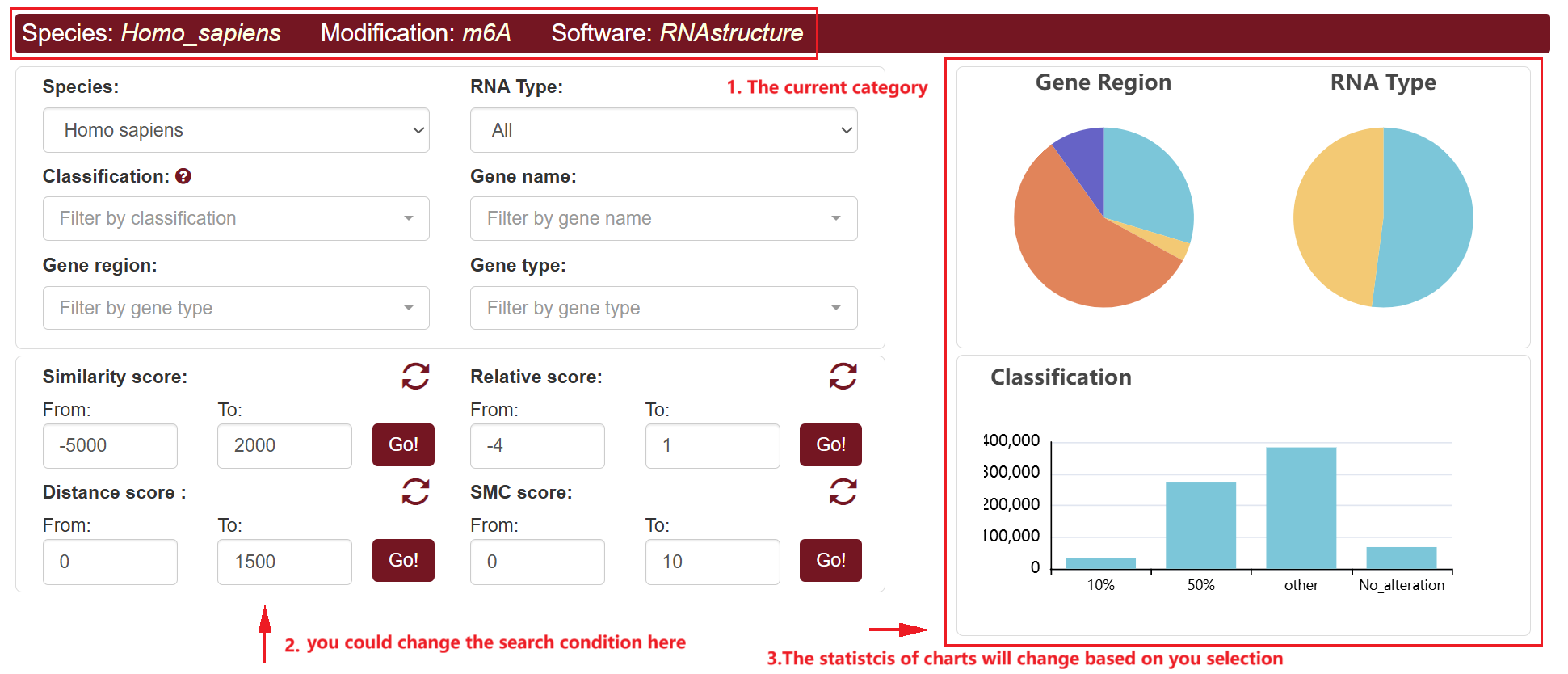 A user-friendly graphical interface was built to support the query, exploration, and sharing of secondary structure alteration and epitranscriptomes. This interface is annotated with putative post-transcriptional machinery, including SNP association, RBP-binding, and microRNA interaction.